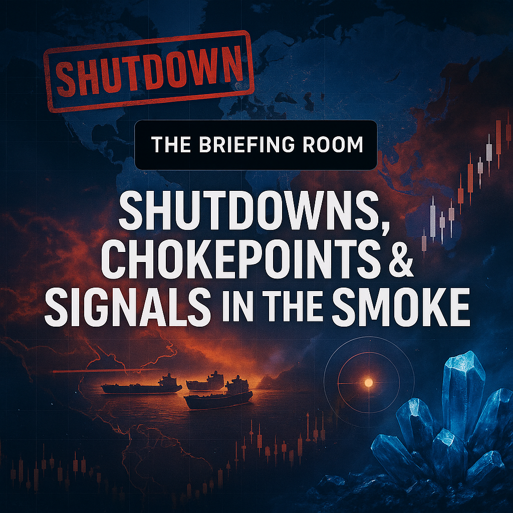 Stream it now on Spotify for the full breakdown — shutdown risks, oil chokepoints, rare earths, AI earnings, and what signals to watch in a data blackout.